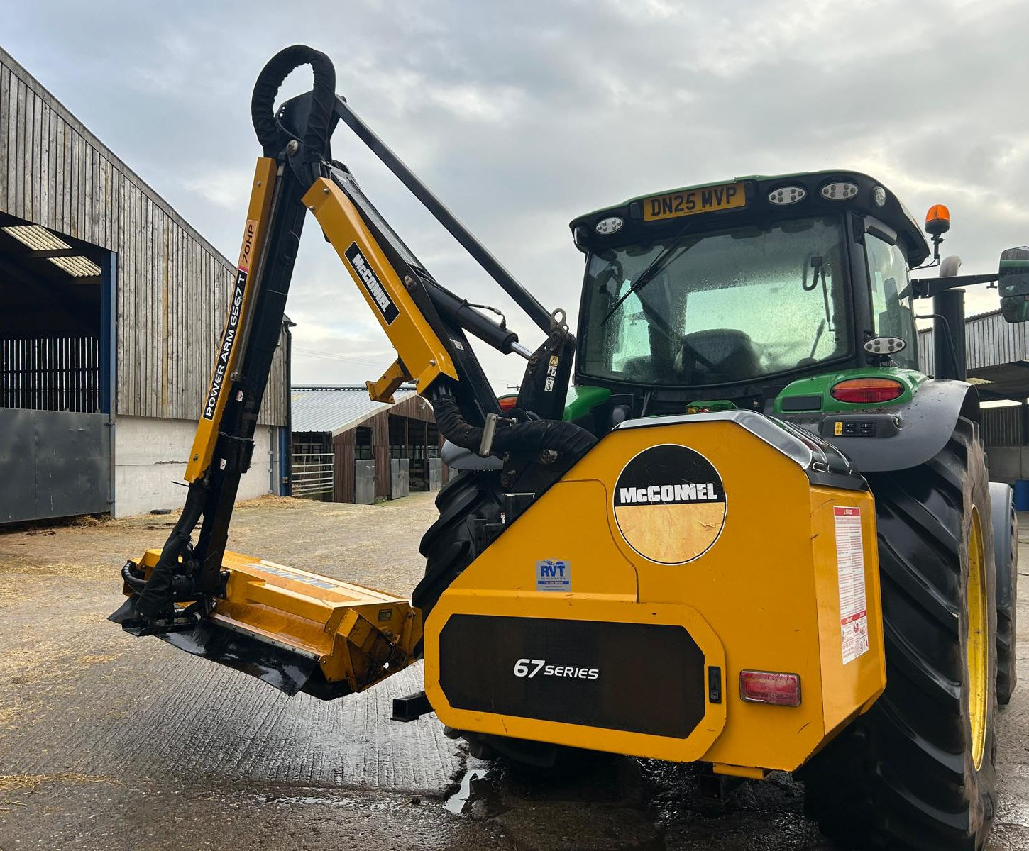 6.5m Reach with 70hp hydraulic motor. 3 Point Linkage Mounted with Stabiliser Frame. Power Slew. Integrated Oil Cooler. LED lights, Soft Start Rotor, Motion Control joystick.
